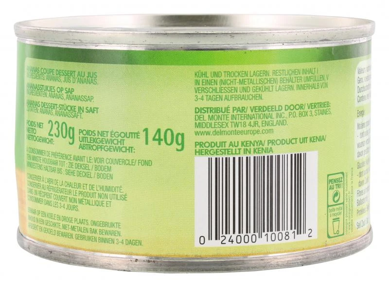 Del Monte® Ananas Dessert Stücke eignen sich zum Backen, für Ihre Desserts und ebenso als wesentlicher Bestandteil im exotischen Fruchtsalat, Cocktail oder Smoothies.