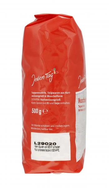 Muscheln, Suppennudeln. Teigwaren aus Hartweizengrieß.