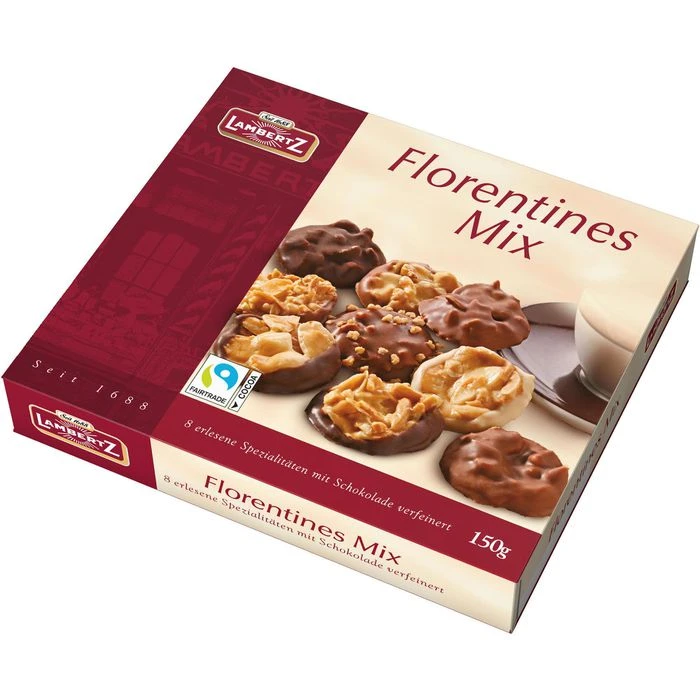 • Zarte Florentiner mit Vollmilch-, Zartbitter- und weißer Schokolade